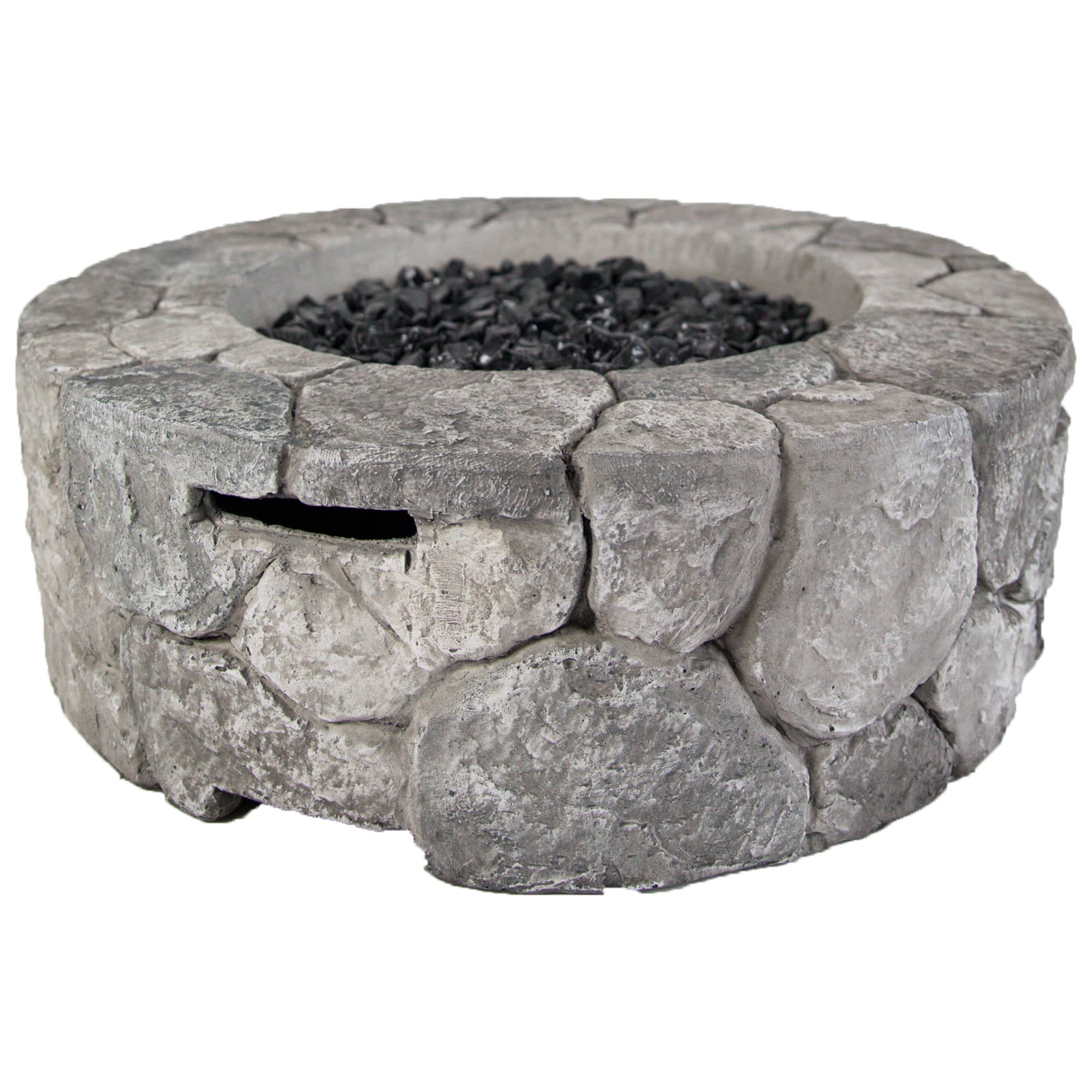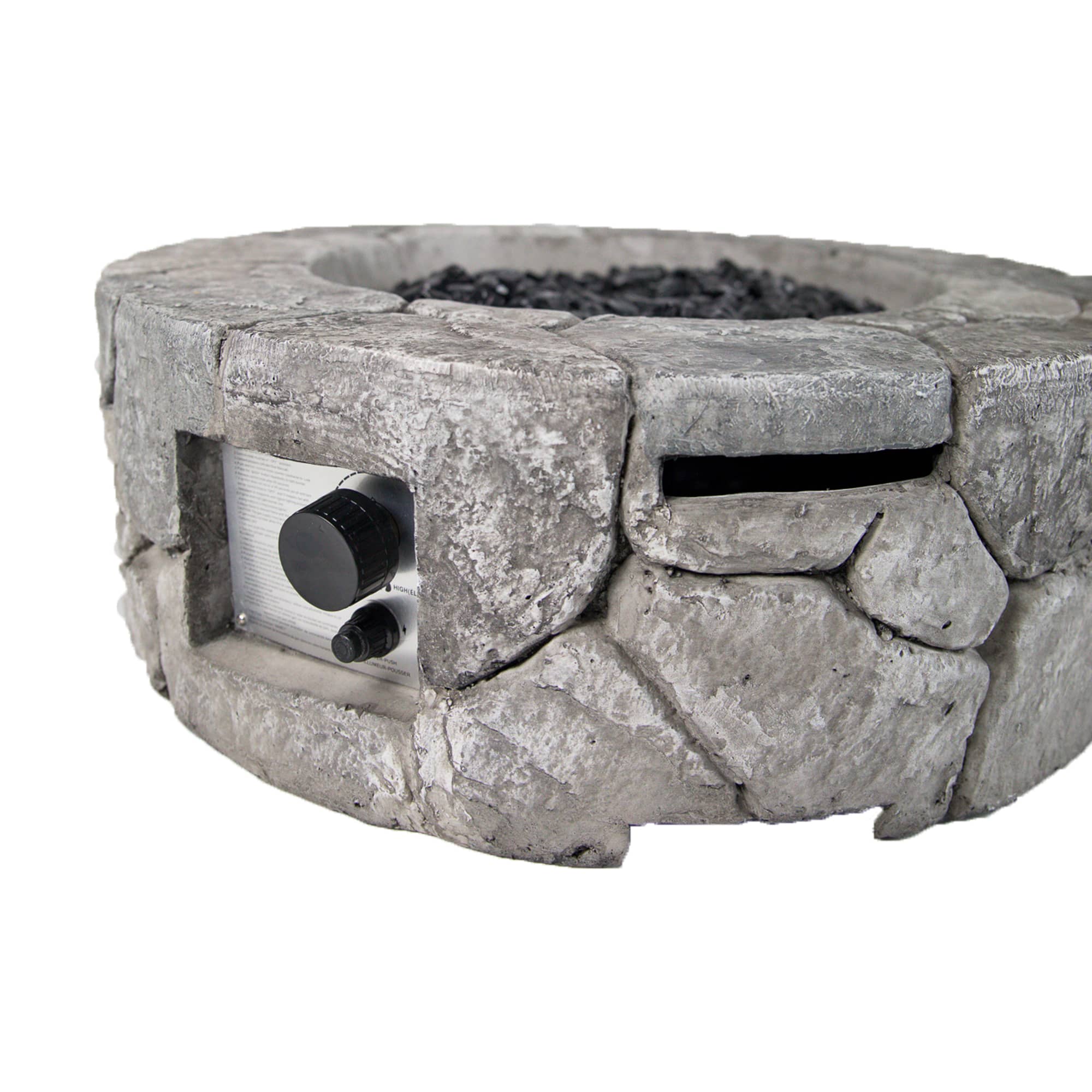 With its decorative stonework finish, this Bluegrass Living Liquid Propane Gas Fire Pit features the classic elements of contemporary high-end furniture, with the durability of complete weather resistant MGO construction. Complete with a 40,000 BTU stainless steel burner, you can enjoy all the warm ambiance of a classic fire in the comfort of your backyard. This unit includes black crystal glass beads which beautifully accents its fully adjustable flames. Lastly, a premium 210D Oxford Fabric Weather Cover is included to protect the fire pit against outside elements when not in use. A 1-year limited warranty is included with purchase.
