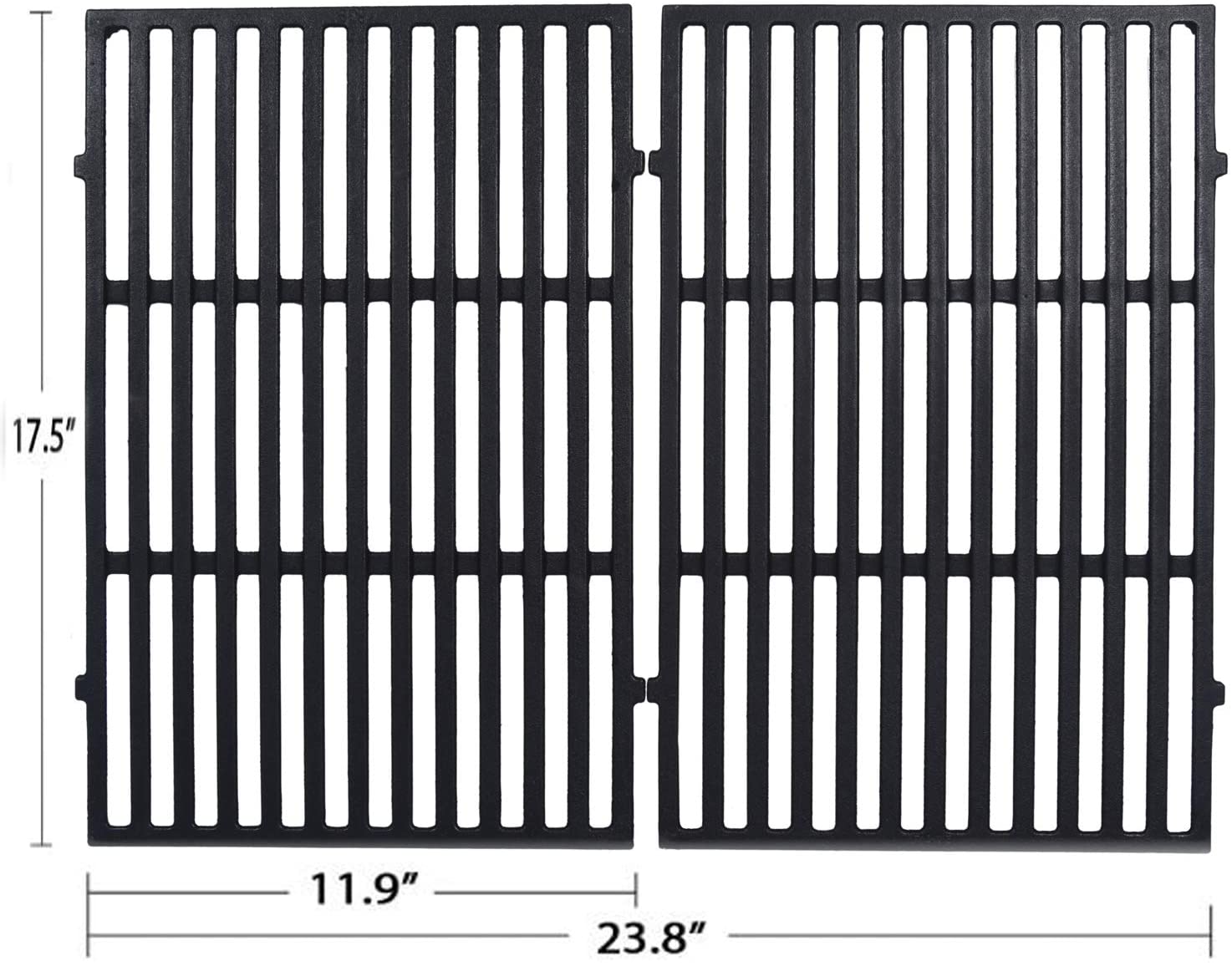 These Avenger Porcelain Coated Cast Iron Grill Grates are designed to provide top level searing at an excellent price. Made of heavy-duty cast iron, these grates ensure heat retention and a fantastic sear on any meat or vegetable. Easy to clean and maintain, the porcelain coated cast iron grill grates are long-lasting and reliable, ensuring years of use to come! These Grill Grates are compatible with a variety of grill makes and models. This kit contains 2 Grill Grates.