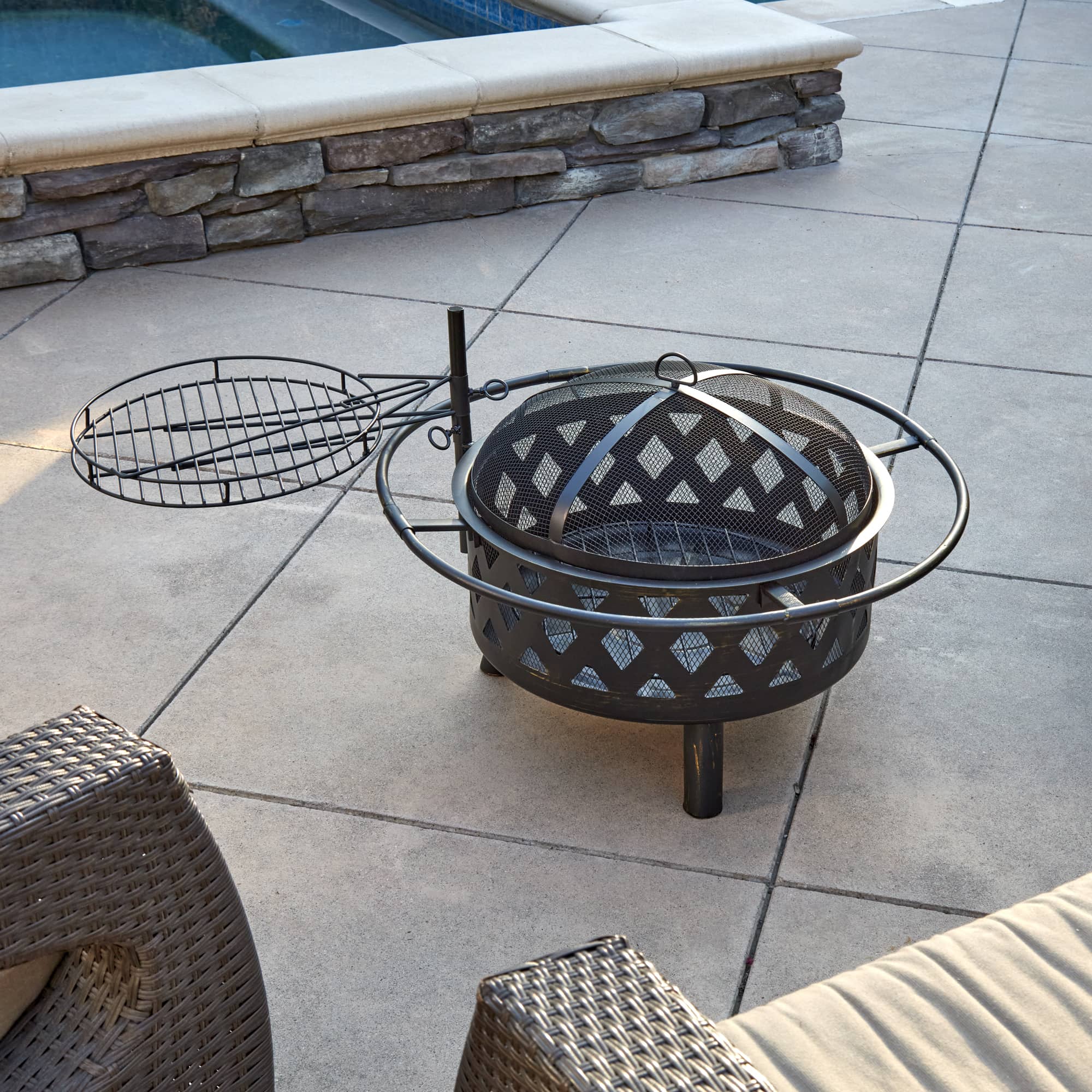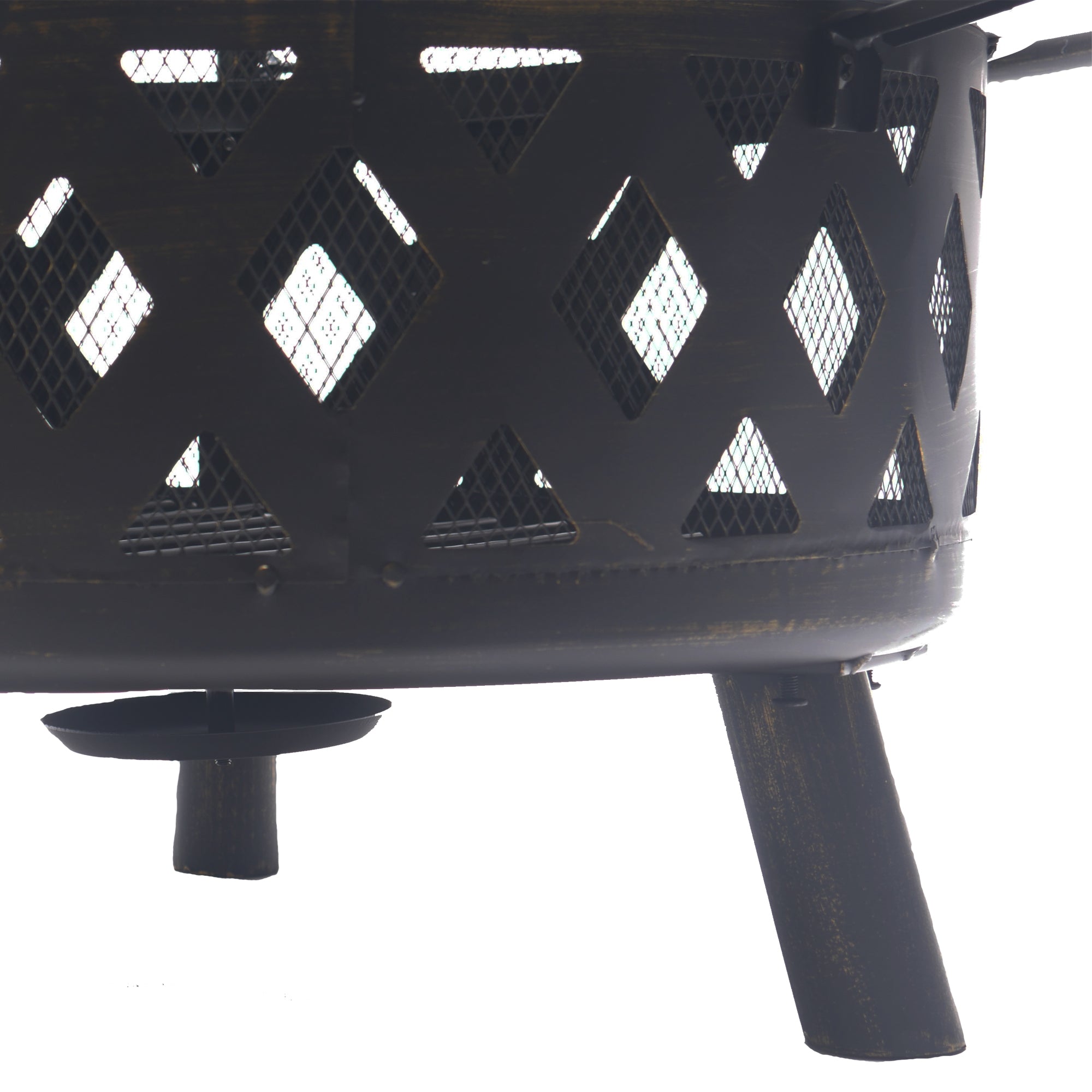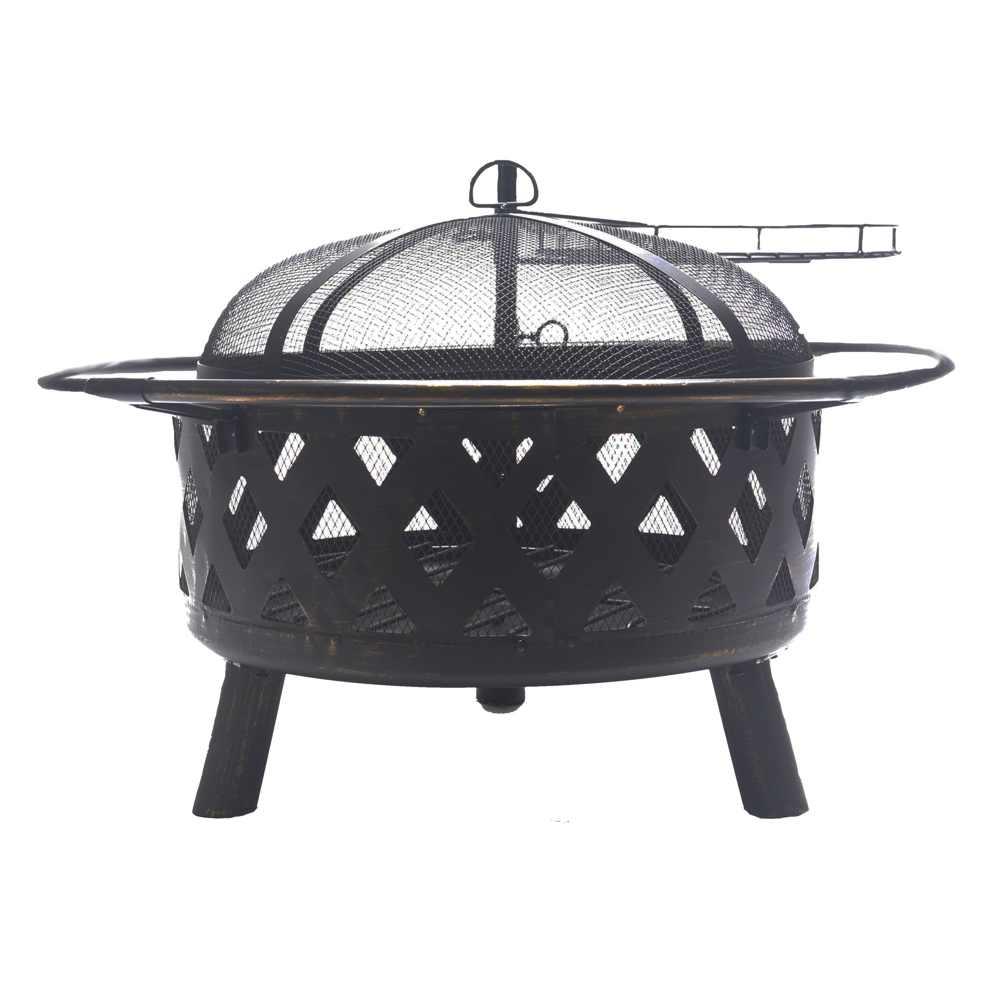 The 30 in. Roadhouse Steel Wood Burning Fire Pit from Bluegrass Living is ideal for a robust backyard fire or barbecue. Beautiful handcrafted decorative moldings embedded in a rich, oil-rubbed bronze finish is sure to make an impression and add an elegant décor to any outdoor space. While entertaining or enjoying your fire pit, use the included 360-degree cooking grid with adjustable height swivel to barbecue up something special.