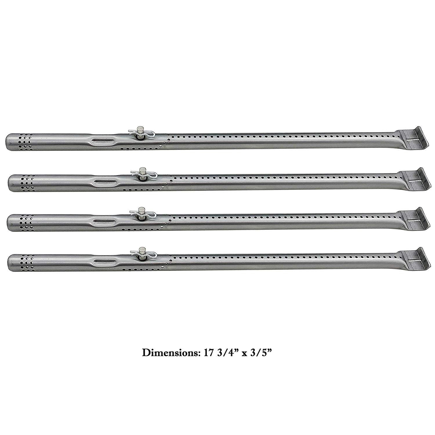 - Package Contains 4pcs Stainless Steel Grill Burners + 4pcs Stainless Steel Heat Plates + 3pcs Adjustable Crossover Tubes.