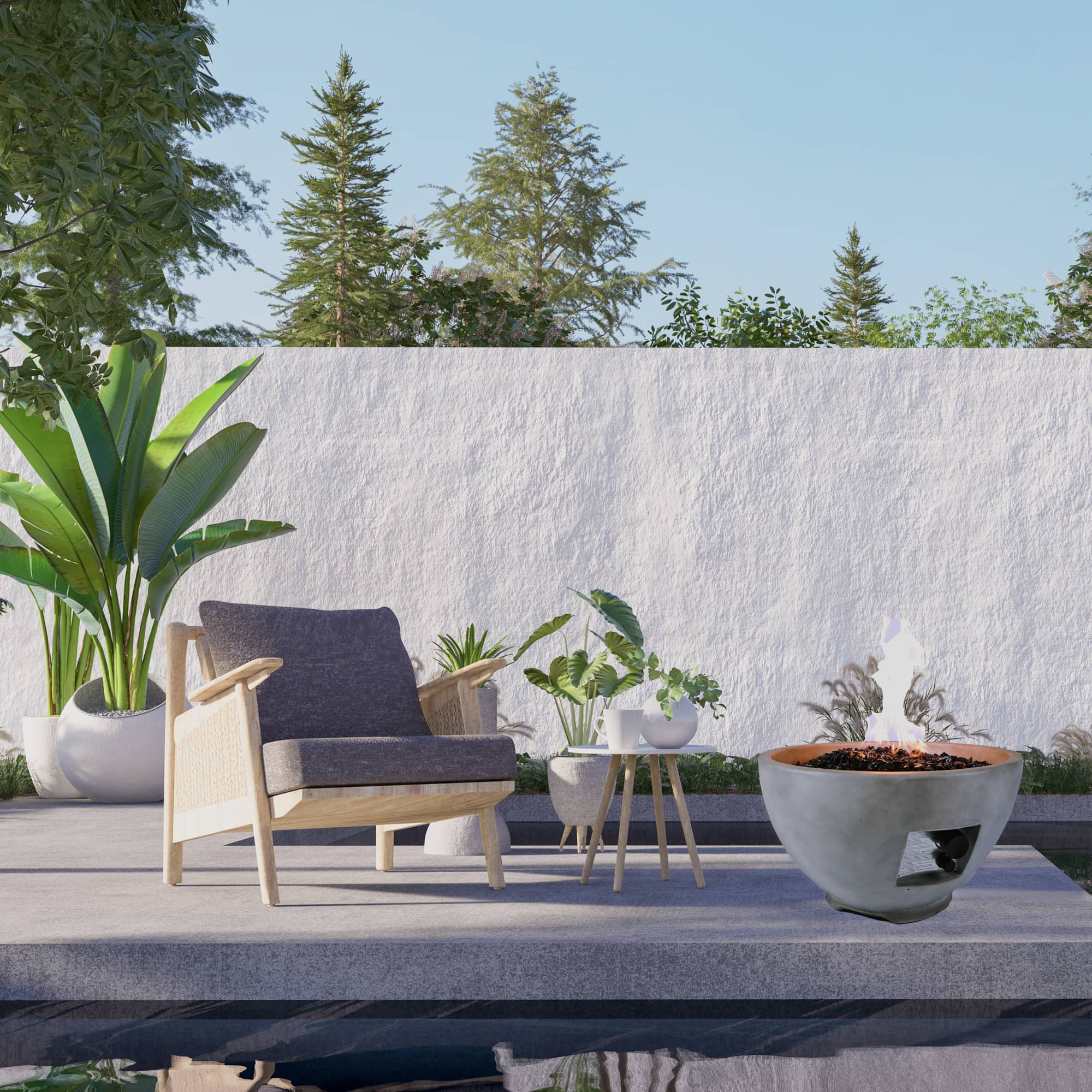 With its modern design, this Bluegrass Living Liquid Propane Gas Fire Pit features the classic elements of contemporary high-end furniture, with the durability of complete weather resistant MGO construction.