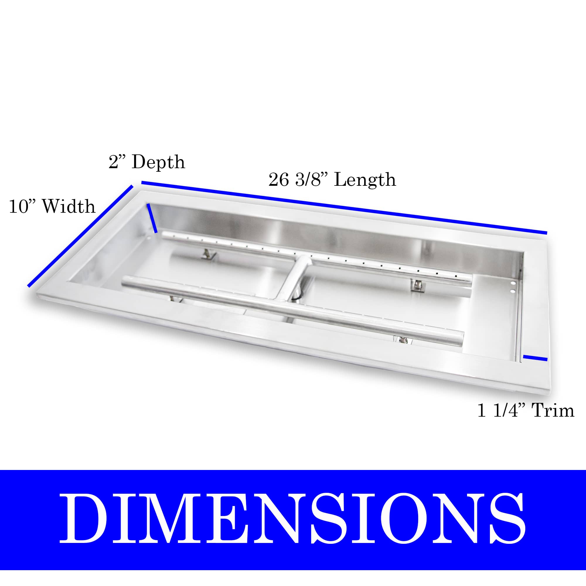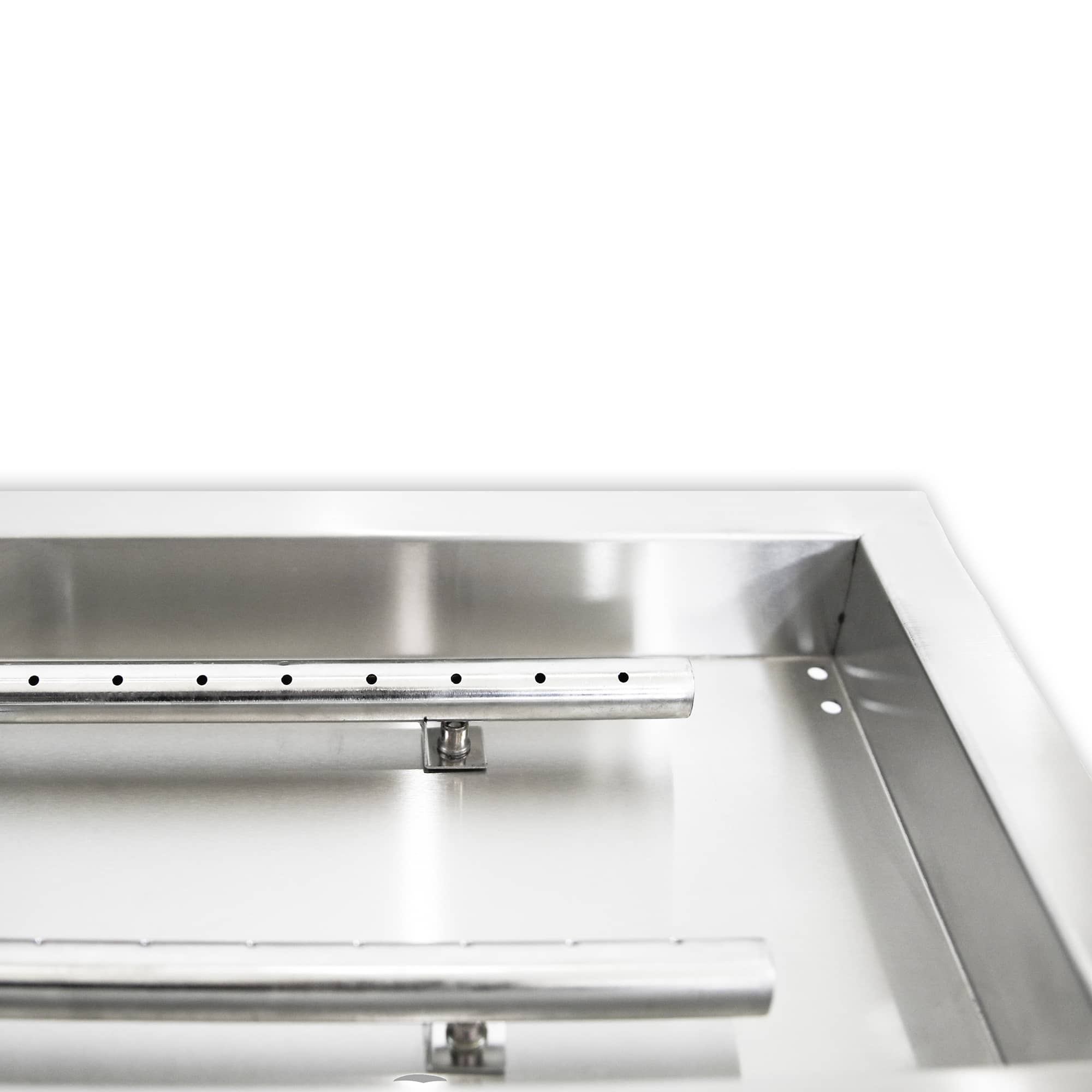 With its modern design, the Bluegrass Living stainless steel fire pit kit comes complete with both a 304 stainless-steel drop-in pan and a 304 stainless steel H burner. This drop-in fire pit pan adds an elegant finishing touch to any project! A 1-year limited warranty is included with purchase. Kit includes fire pit drop-in pan and burner only, external connections, orifices, and other parts are not included.