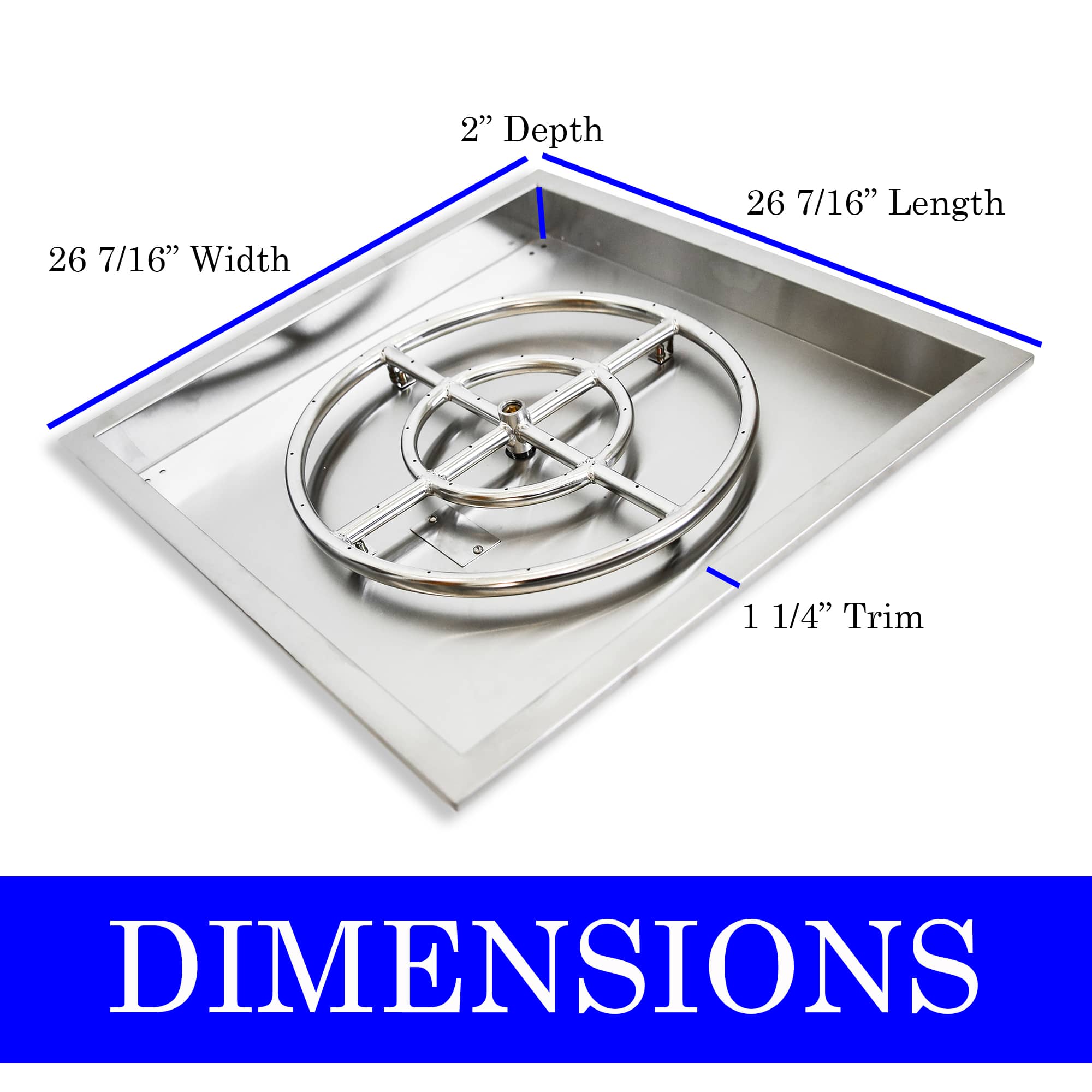 · Product Dimensions: 26 7/16" L x 26 7/16" W x 2" H (2 3/4" H at gas connection)