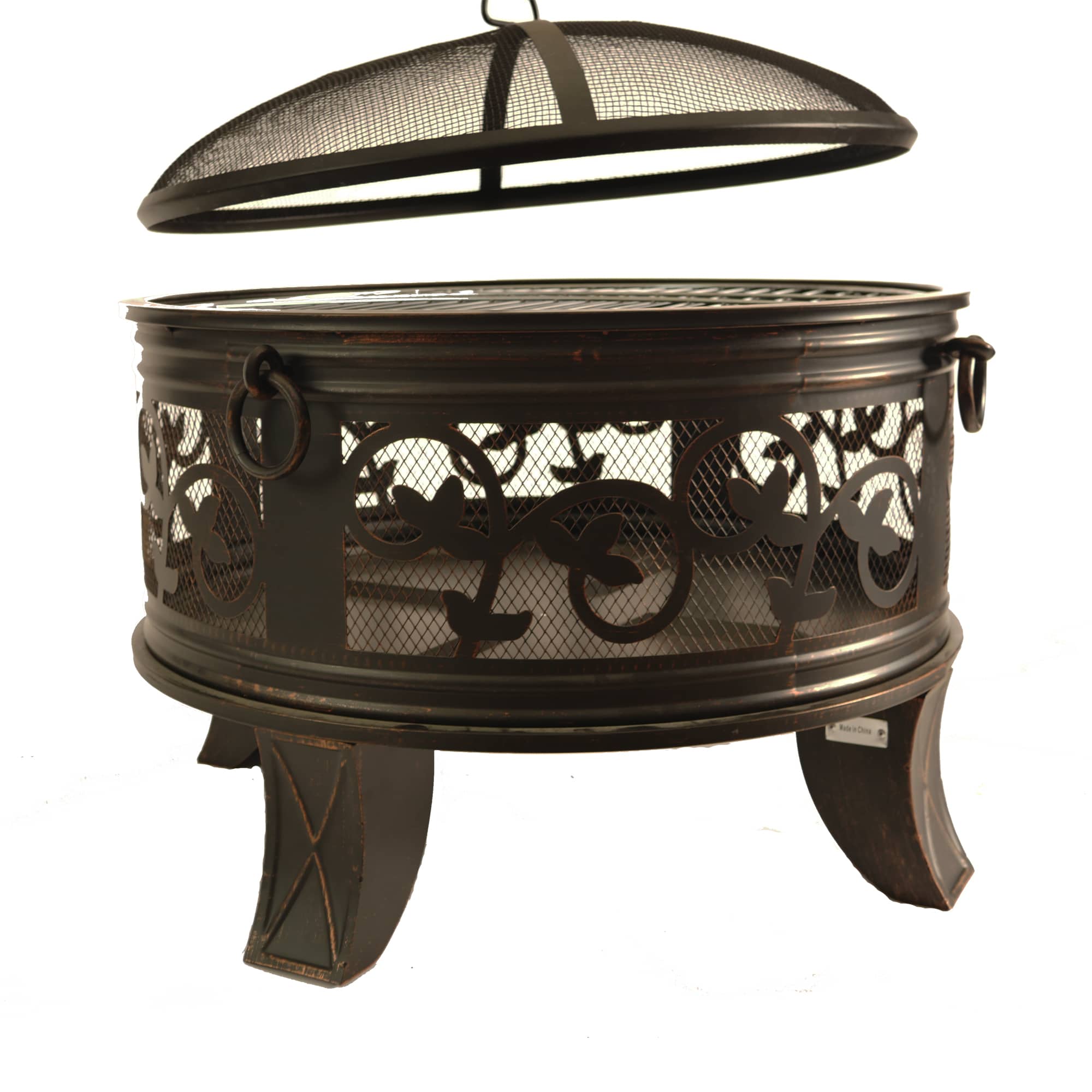 The 26 in. Steel Wood Burning Deep Bowl Fire Pit from Bluegrass Living, featuring an industry leading 26’’ diameter, 11’’ deep fire bowl, is ideal for a robust backyard fire. Beautiful handcrafted decorative moldings embedded a rich, oil-rubbed bronze finish is sure to make an impression and add an elegant décor to any outdoor space. While entertaining or enjoying your fire pit, use the included cooking grid to barbecue up something special.
