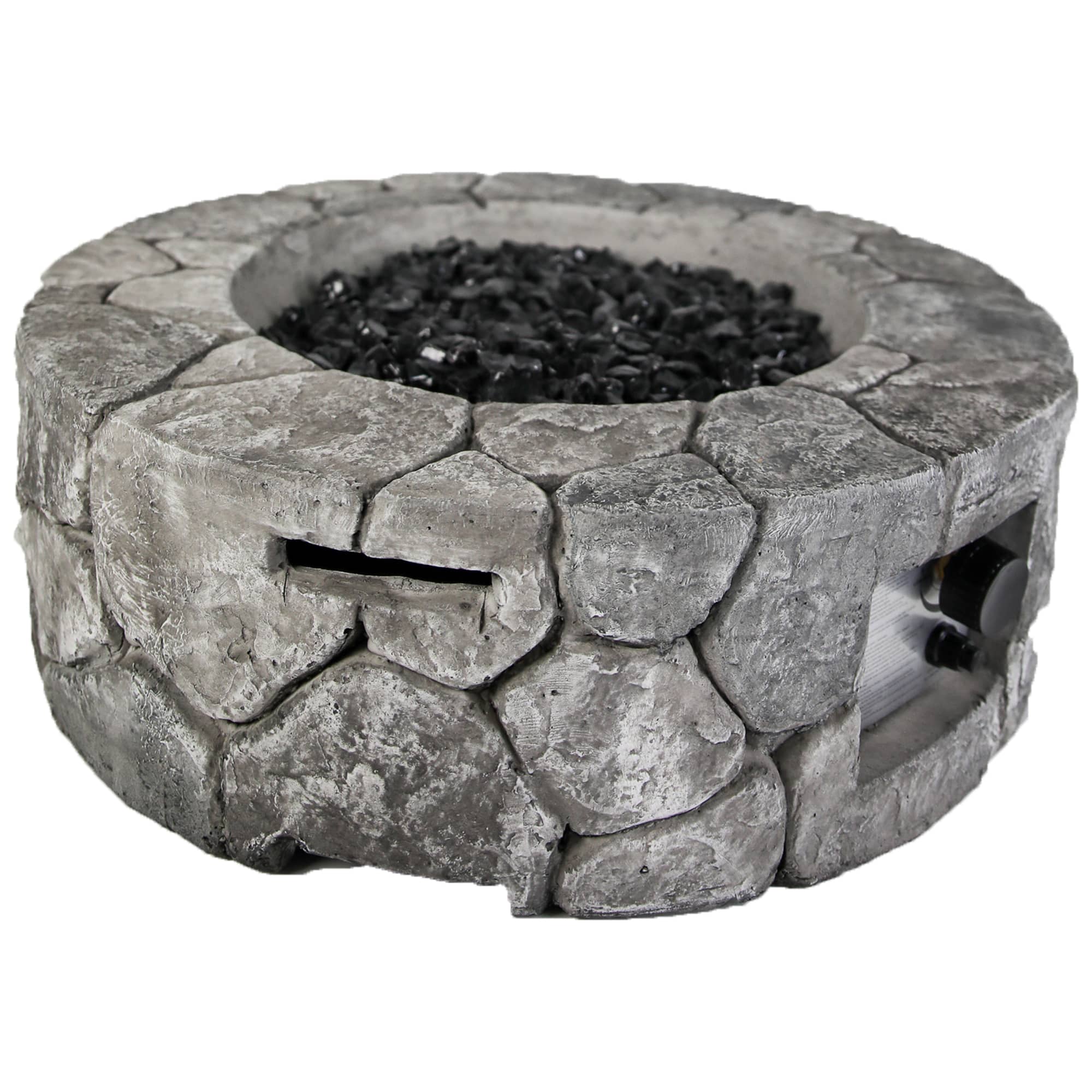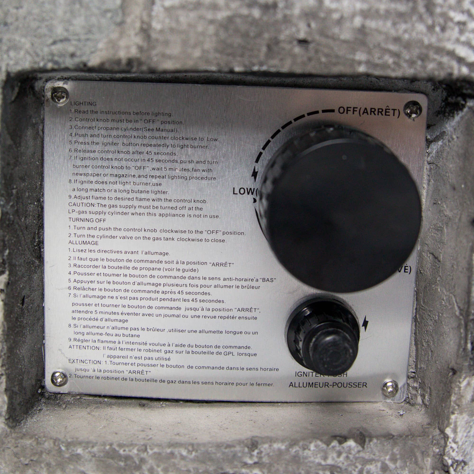 With its decorative stonework finish, this Bluegrass Living Liquid Propane Gas Fire Pit features the classic elements of contemporary high-end furniture, with the durability of complete weather resistant MGO construction. Complete with a 40,000 BTU stainless steel burner, you can enjoy all the warm ambiance of a classic fire in the comfort of your backyard. This unit includes black crystal glass beads which beautifully accents its fully adjustable flames. Lastly, a premium 210D Oxford Fabric Weather Cover is included to protect the fire pit against outside elements when not in use. A 1-year limited warranty is included with purchase.
