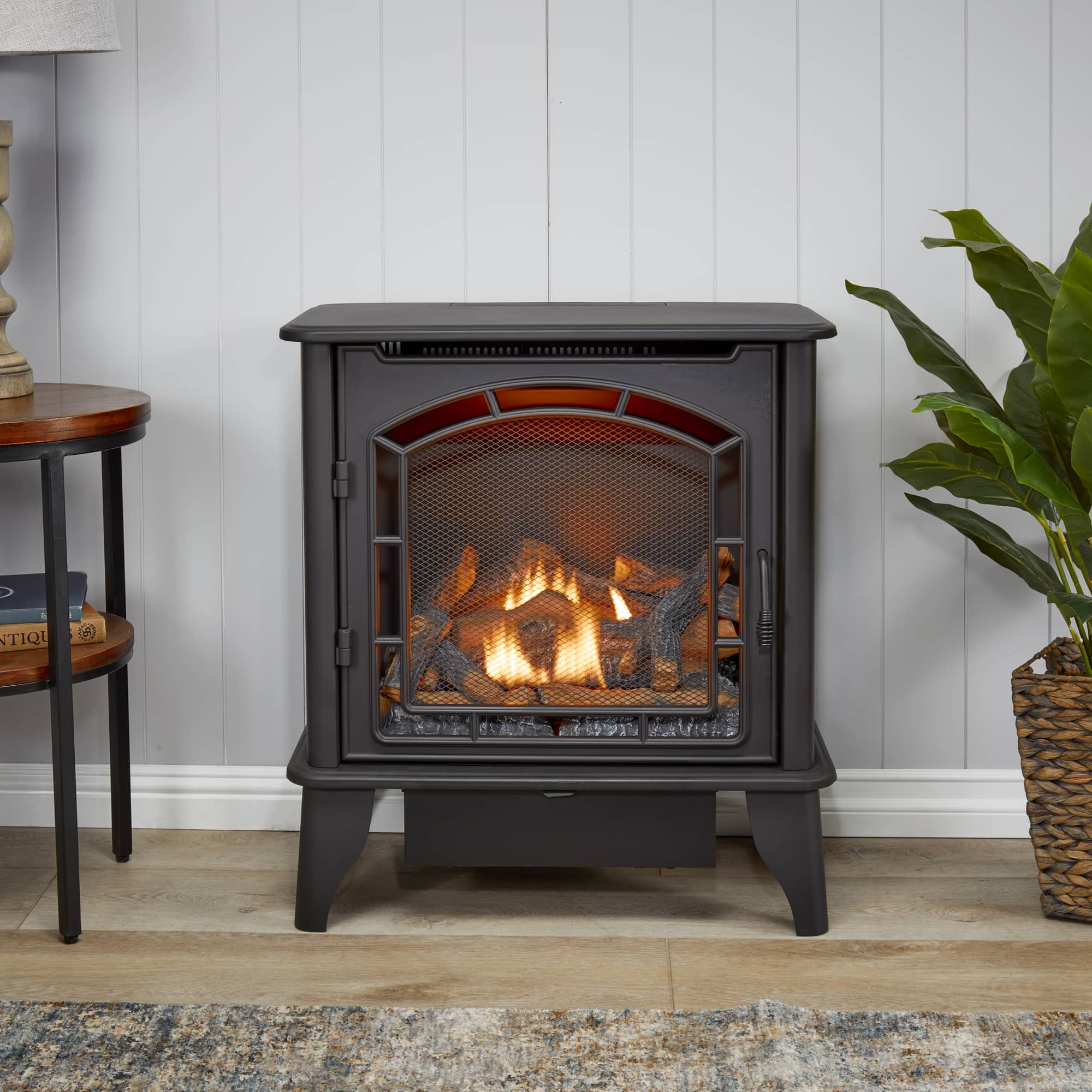 You won’t miss out on ambiance either, since the U-Burner chassis design and detailed, hand painted logs create such a realistic fire. A three-sided view gives you a complete view of the stunning flames. Our Dual Fuel Ventless Gas Stove is the solution for your home’s alternative heating needs, without skimping on warmth and decorative appeal.