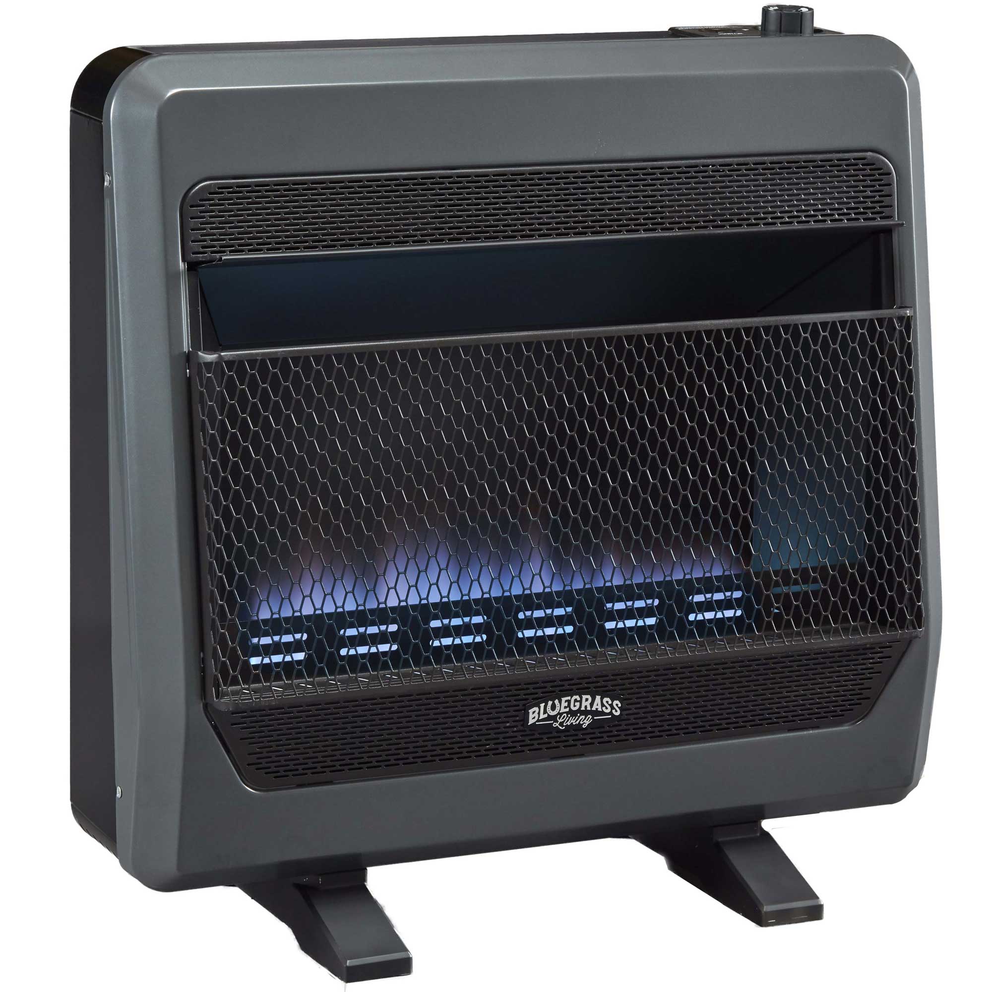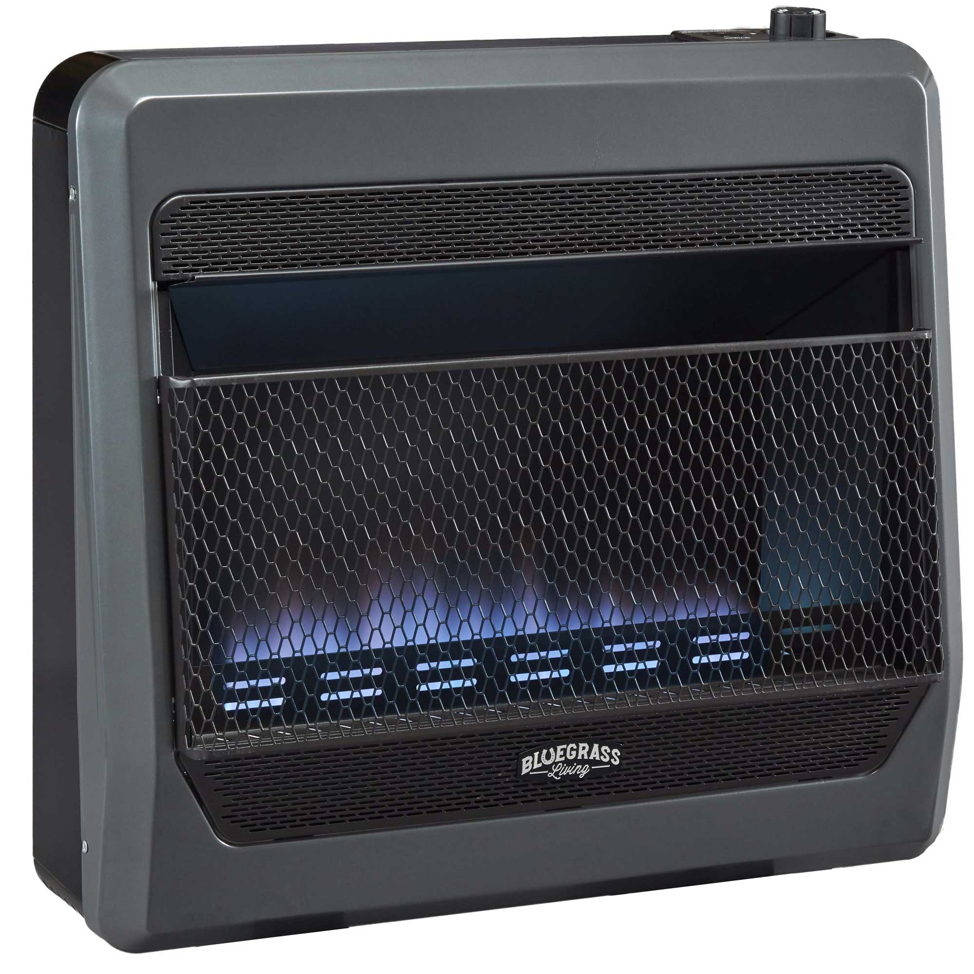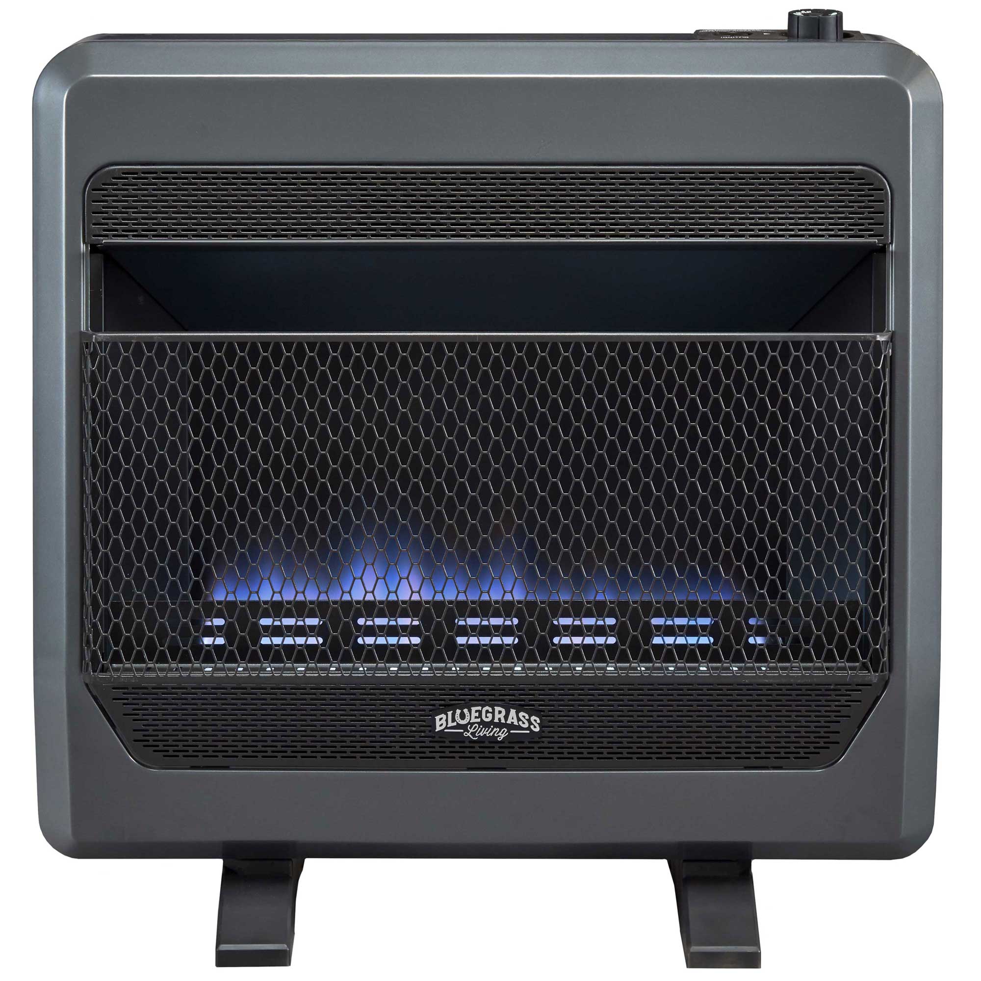 The Bluegrass Living ventless blue flame gas wall space heater operates on Natural Gas/Propane and gives you 30,000 Maximum BTU of reliable supplemental heat that can heat up to 1,400 sq. ft of living space. The space heater is perfect for not only just taking the chill out of the room but also for keeping your area warm on even the coldest winter days.