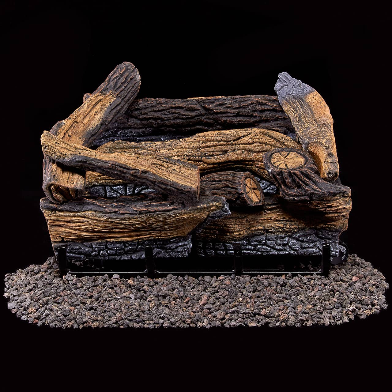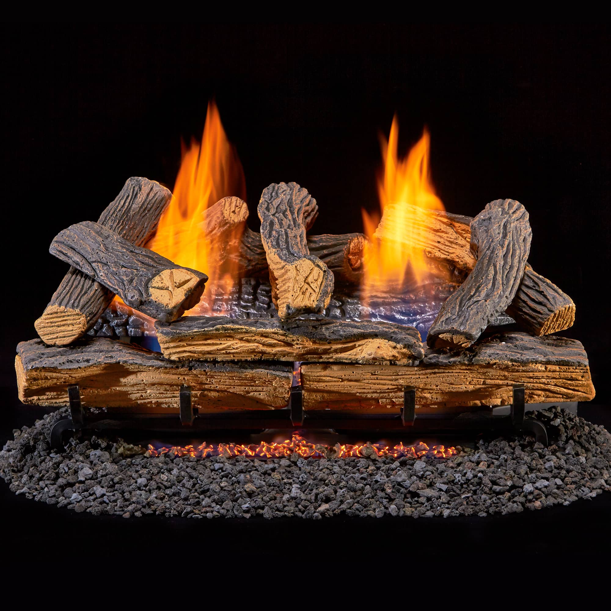 The Split Red Oak Ventless Log Set by Duluth Forge is designed for use with Liquid Propane Gas only, offering an efficient and reliable heating solution with a realistic wood-burning appearance. You will experience a mess-free, realistic, quality gas log set that includes the convenient feature of a Thermostatic Remote Control giving you the ability to customize the heat settings in your room. This rich, hand-painted, cement log set provides excellent details emulating the realism of a wood fire. This log set is designed to reflect a split stack and was developed using real wood molded to create the look of a new fire with bark and split wood elements being the focus. Receive and enjoy both quality and the efficiency of 30,000 BTU of Vent Free Heating with the Split Red Oak Vent Free Gas Log Set.