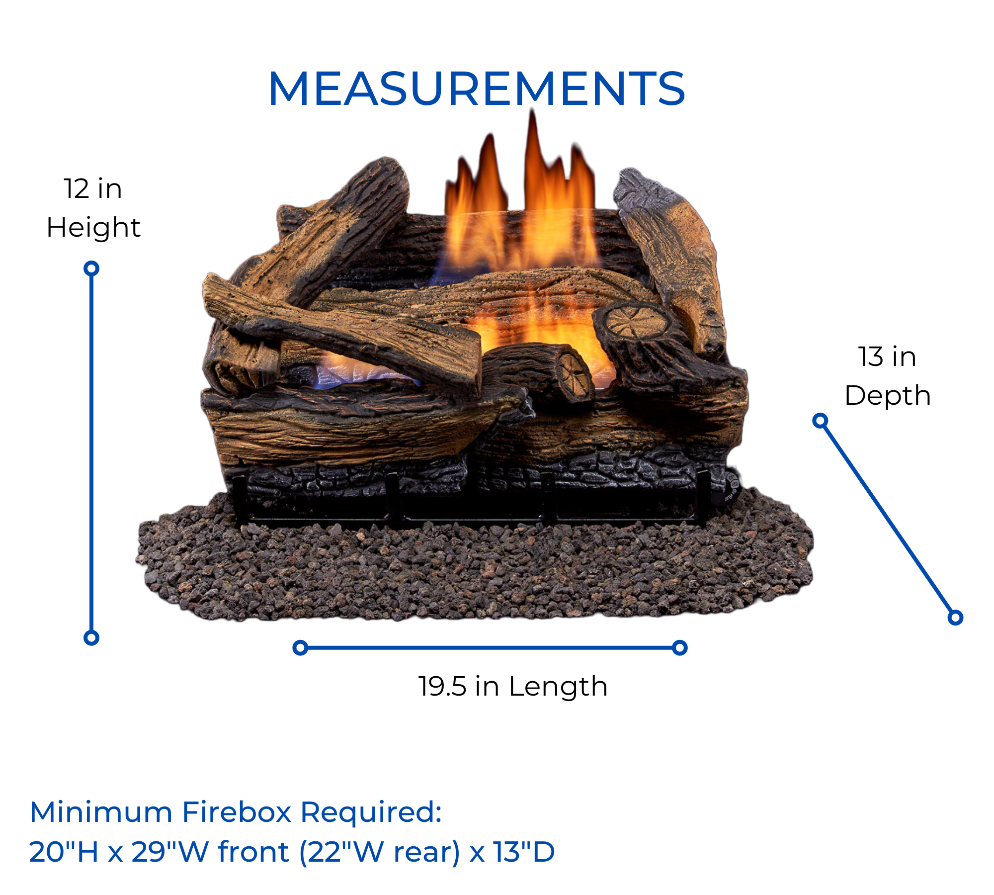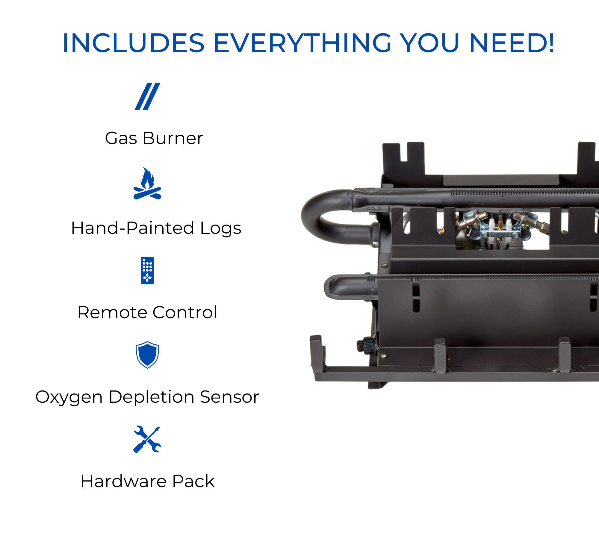 • Thermostat Remote Control Included – This remote controlled unit allows you to set your desired heat temperature and control your log set by using the included remote control. (System Requires 4 AA and 2 AAA Batteries – Included)