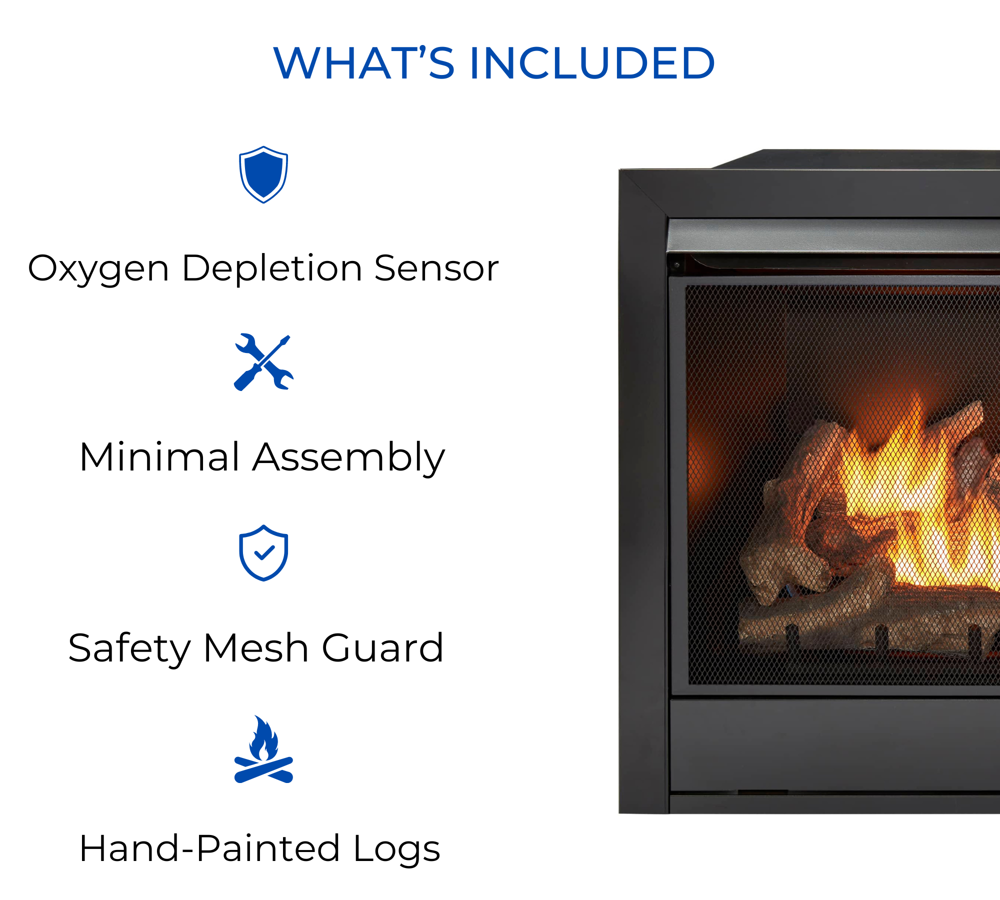 This fireplace insert includes many features like remote control functions, Oxygen Depletion Sensor with automatic shut-off, battery assisted piezo ignition, and much more. Using Natural Gas or Liquid Propane, the Duluth Forge Ventless Fireplace Inserts radiates 32,000 BTU of heat, enough to heat 1,500 square feet of living space.