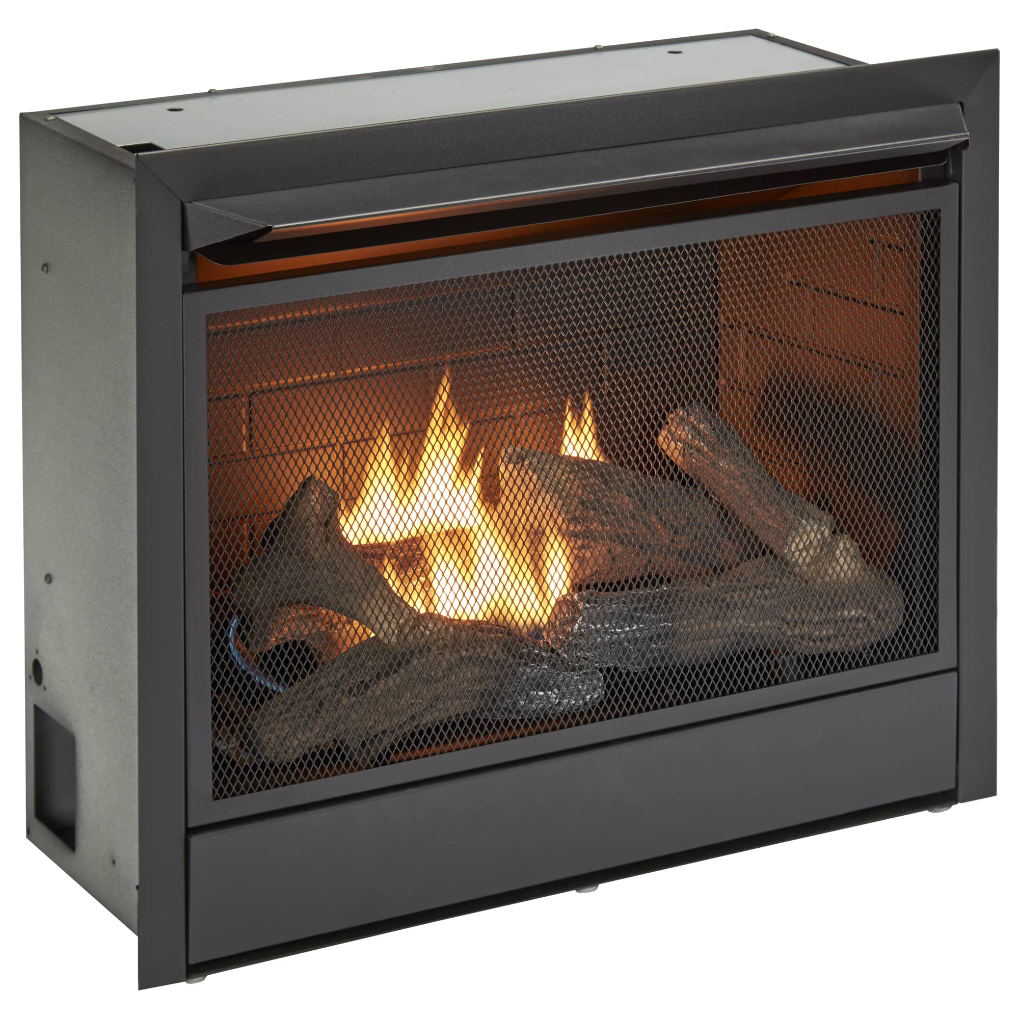 This fireplace insert includes many features like Thermostat Control, Oxygen Depletion Sensor with automatic shut-off, battery assisted piezo ignition, and much more. Using Liquid Propane, the Duluth Forge Vent Free Fireplace Inserts radiates 26,000 BTU of heat, enough to heat 1,350 square feet of space.