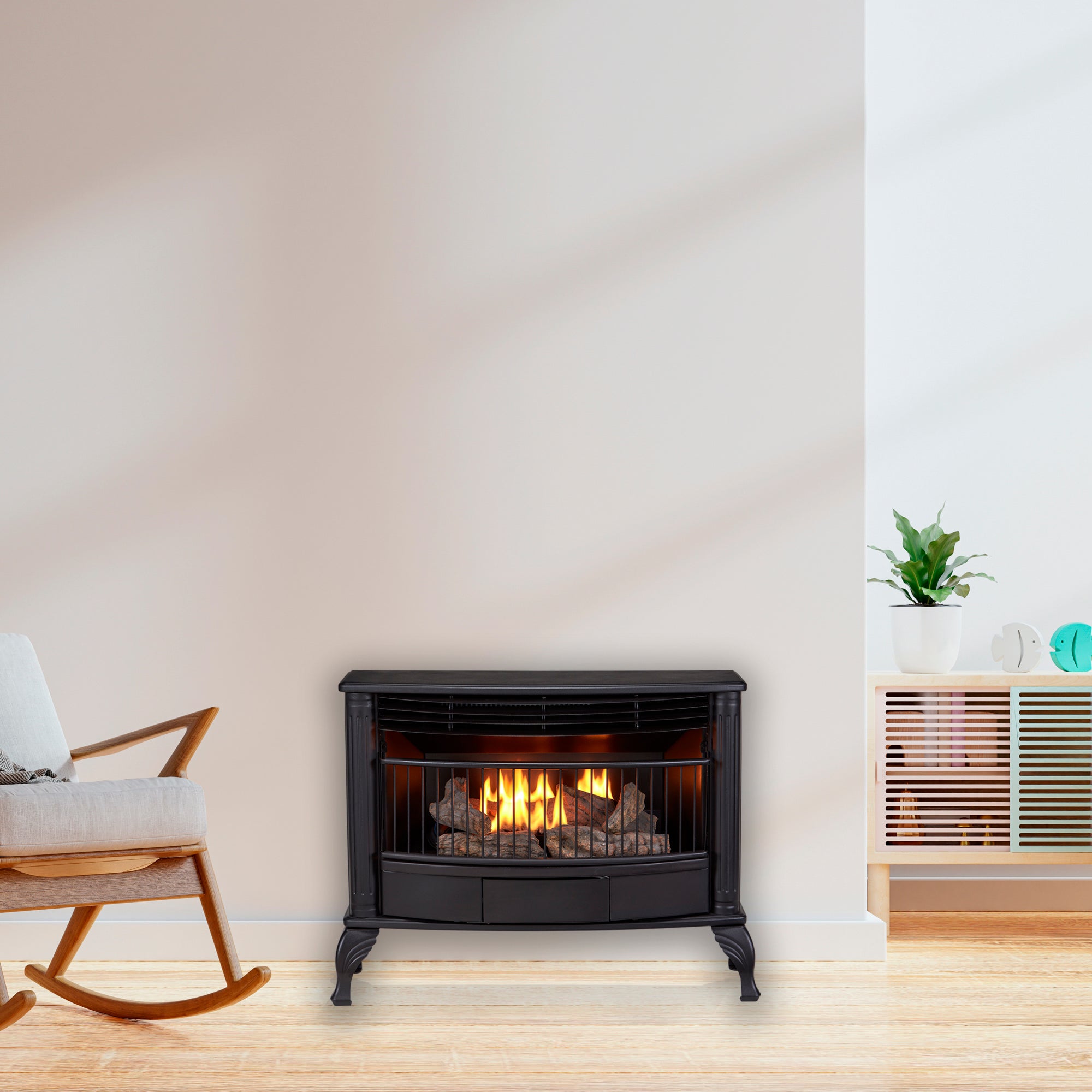 • Economical: 99.9% efficient. No outside duct or chimney needed!