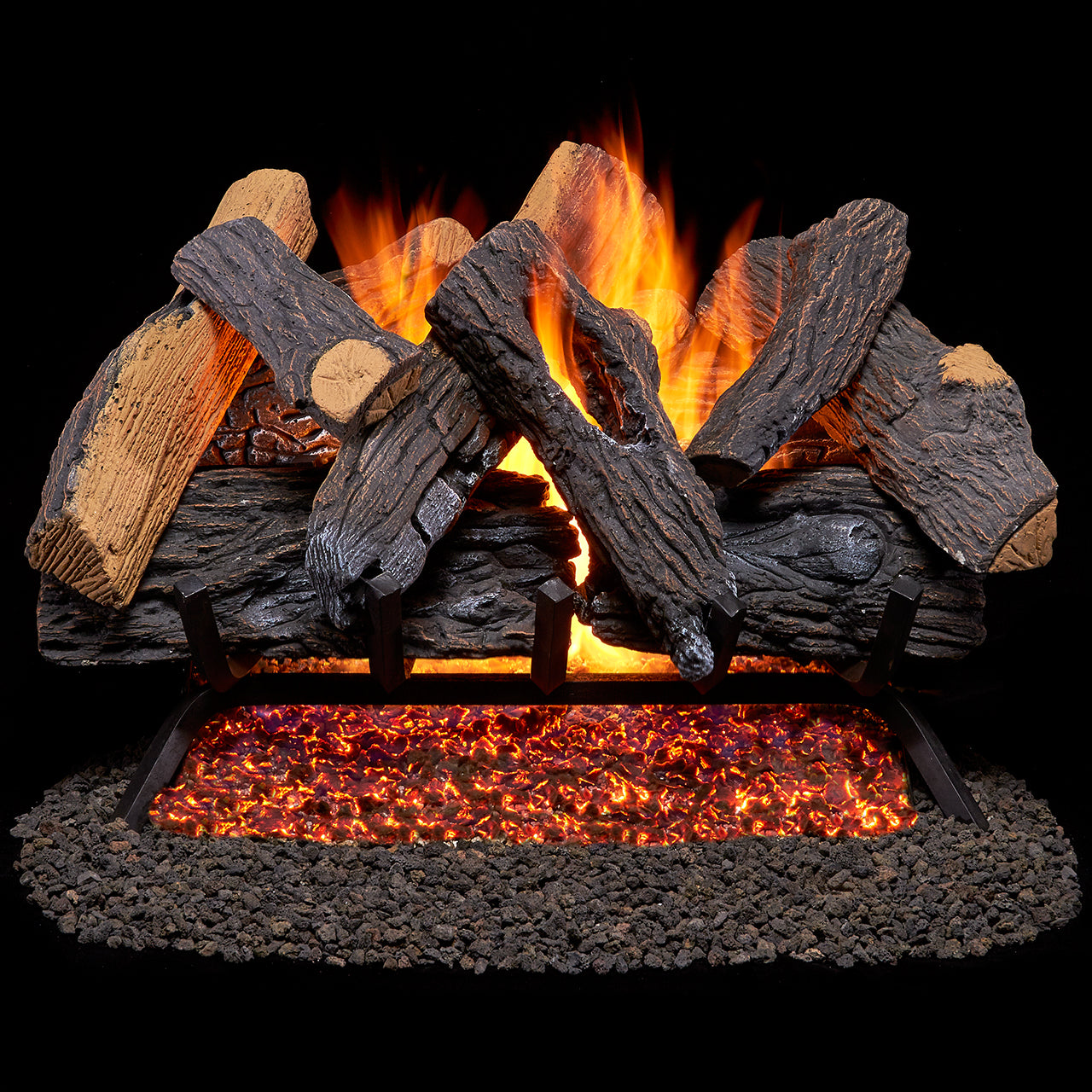 The Heartland Oak Vented Log Set by Duluth Forge recreates the look and feel of a real wood-burning hearth. This Vented Gas Log Set was molded from real wood providing a realistic appearance that incorporates charring, deep bark texture and split accents. The U- Burner chassis design provides multiple rows of flames which brings you the most realistic flame patterns. Like a real wood burning fireplace, the Heartland Oak requires a fully functional chimney with an open flue when in use. The glowing embers create the most illuminating beauty of a warm and classical ambiance.