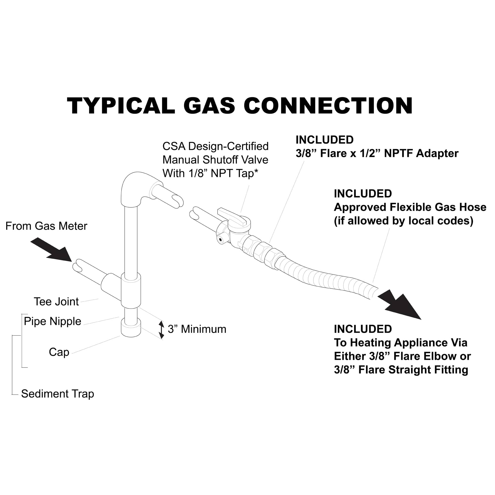 Safety Certified: The Model# HSVFIK connection kit meets stringent safety standards, ensuring a secure and leak-proof connection. Each component is rigorously tested to comply with industry regulations, providing peace of mind and safe operation of your gas heating appliances.