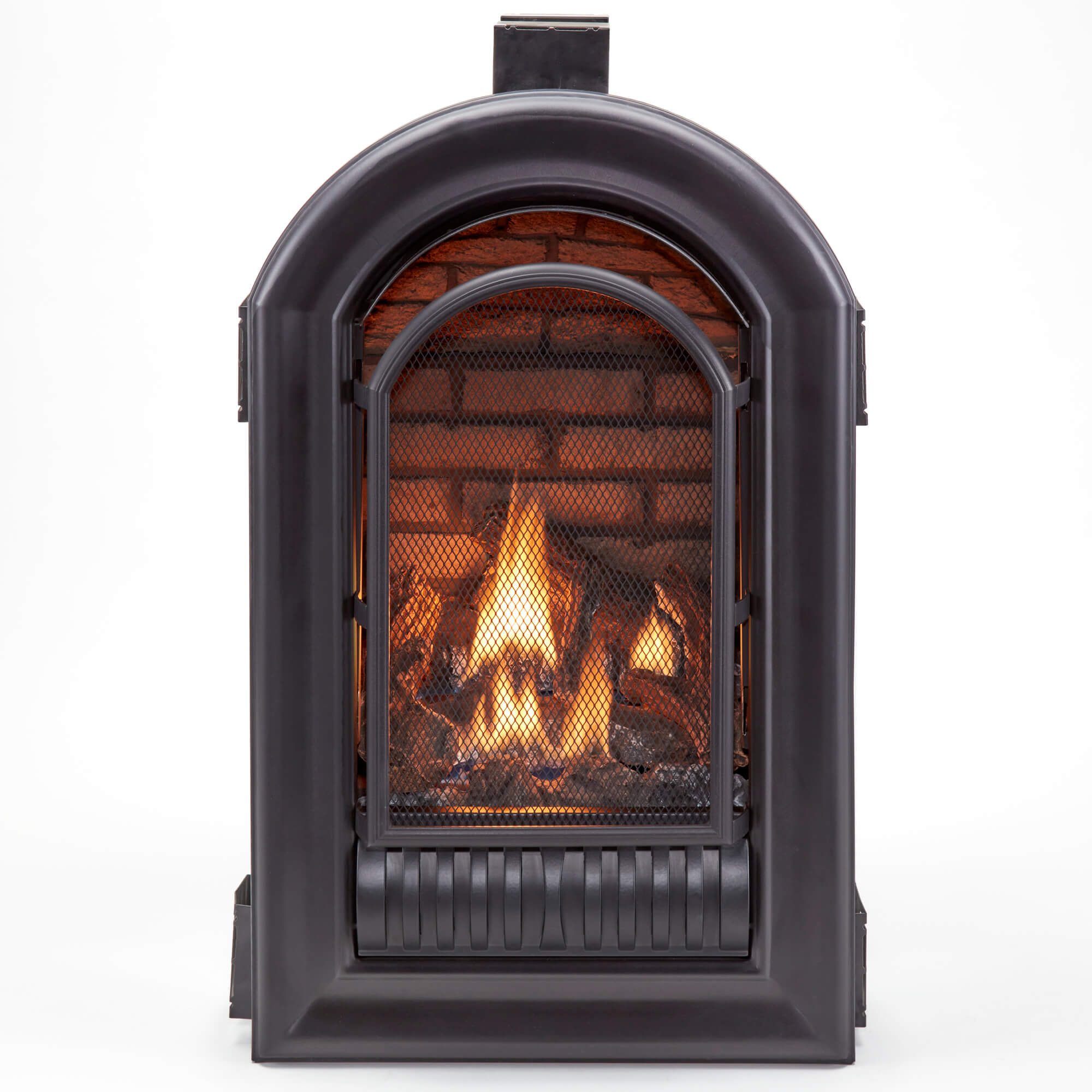 This HearthSense zero clearance vent free arched fireplace insert features a beautiful ceramic brick liner with realistic concrete logs. These dancing yellow flames give you 20,000 maximum BTU of heat, heating up to 1,000 square feet of space using liquid propane! The stylish arch design is perfect to fit into any home décor, and can be customized by either pairing it with a mantel for a traditional look or receding it into a wall for a minimal and modern feel. Add this insert into your living room, kitchen, or dining room to elevate the look of your home.