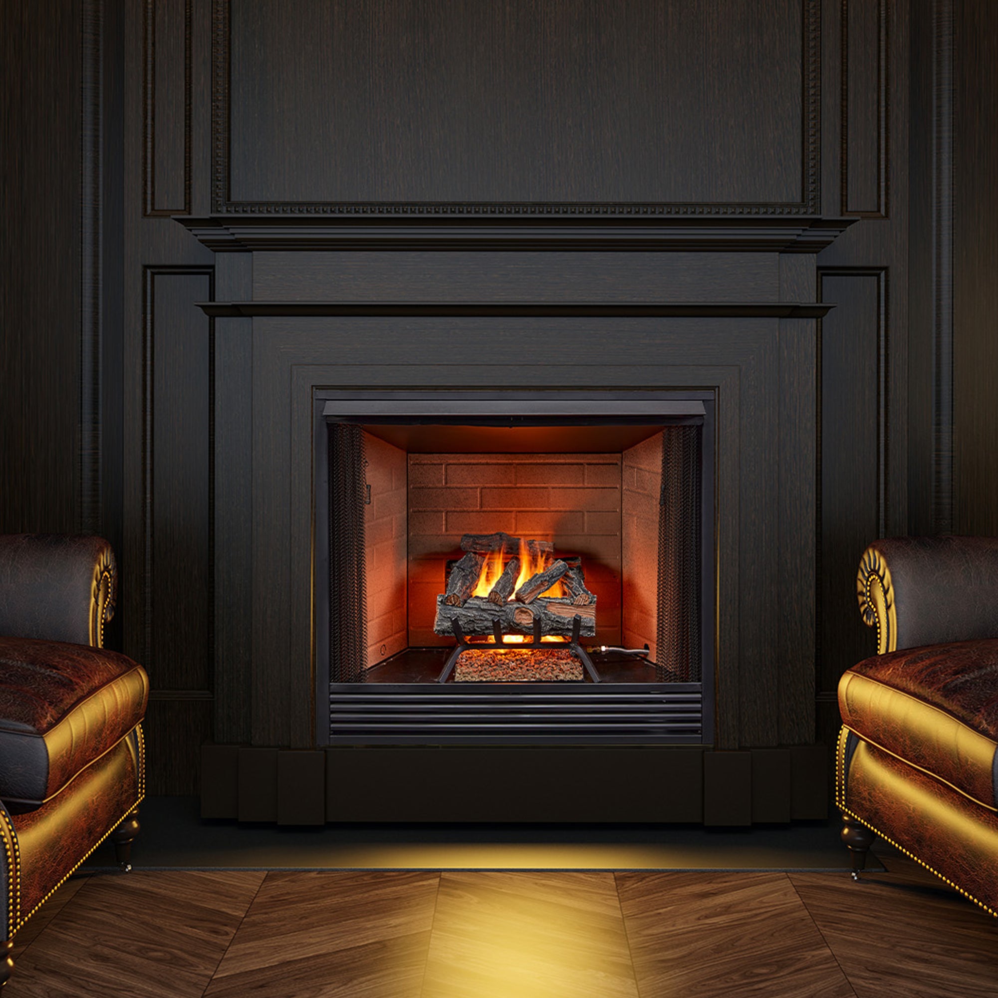 This Vented Log Set by Hearth Sense recreates the look and feel of a real wood-burning hearth. This Vented Gas Log Set was molded from real wood providing a realistic appearance that incorporates deep bark texture and split accents. The U-Burner chassis design provides multiple rows of flames which brings you the most realistic flame patterns. Like a real wood burning fireplace, the log set requires a fully functional chimney with an open flue when in use. The glowing embers create the most illuminating beauty of a warm and classical ambiance. Provides 45,000 BTU's of heat Highly detailed, hand painted realistic looking logs made using superior refractory ceramics to ensure a long life-span Operates on natural gas. A propane gas conversion kit is sold separately - model NVDWA2 (Home Depot part number 305852304) Flue must be open at all times when in use Match light manual ignition
