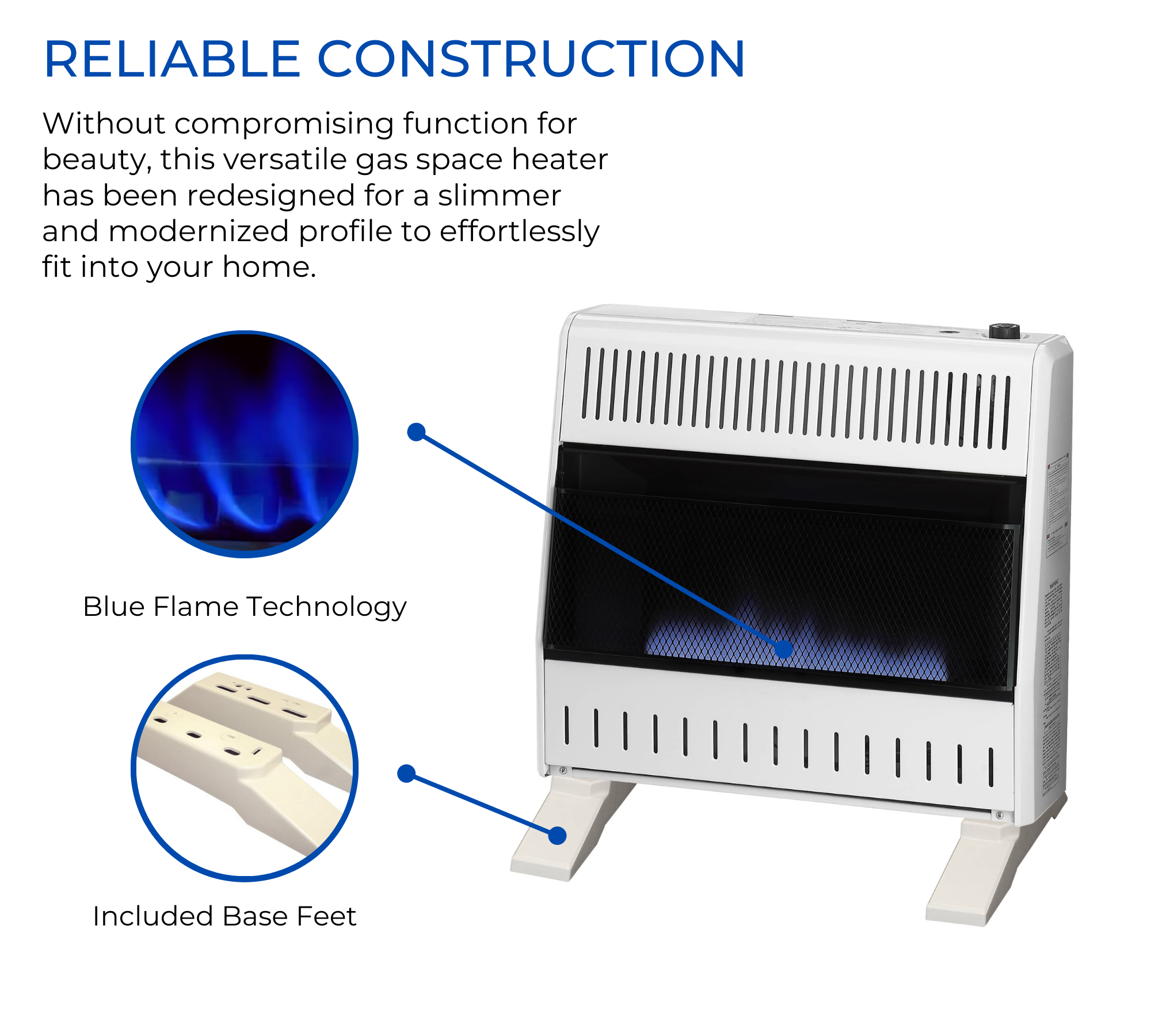 ProCom Heating Manual Control Blue Flame Vent Free Indoor Space Heater 30,000 BTU with Base Feet Included