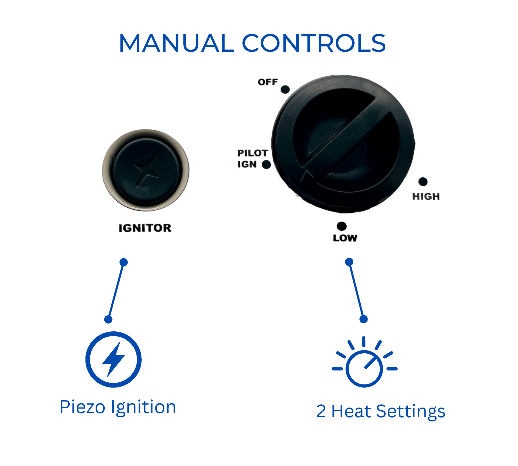 • Manual Control – 3 Heat Settings - Low/Medium/High