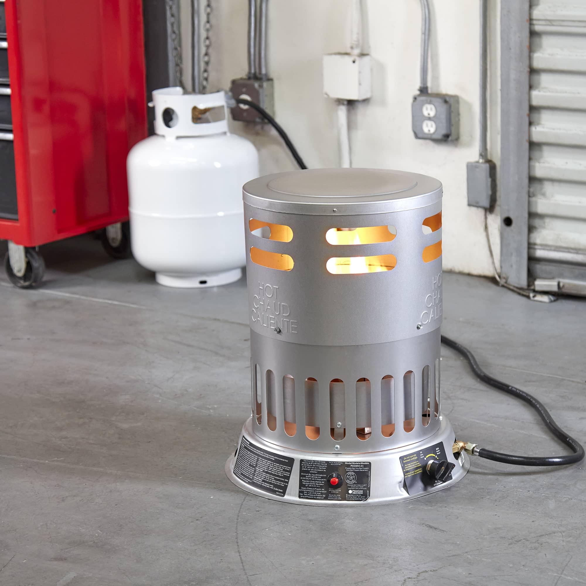 This 80,000 BTU Portable Propane, LP Gas Convection Construction Heater will give you 360 degrees of Heating Radius, allowing for quick and efficient heat distribution.It heats up to 1,900 square feet or a 38' x 50' x 8' area. The long lasting Construction Heater is rugged and will run 11 hours on a 20 lb. propane cylinder, and up to 22 hours on a 40 lb. propane cylinder.