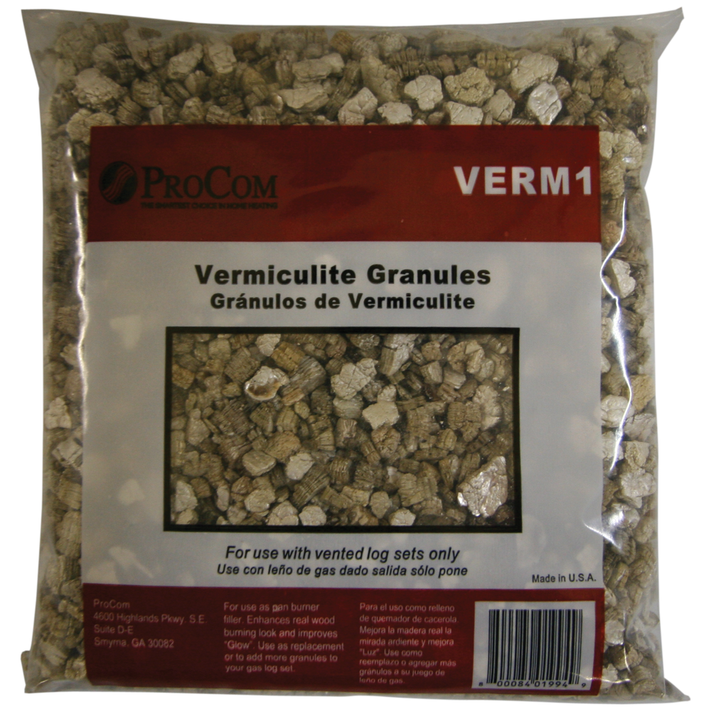 ProCom Vermiculite Granules are designed to be poured into a liquid propane gas vented log set burner to distribute the gas evenly throughout the burner to create a more realistic fire. Vermiculite can also be used as filler under fire glass burners to create a more evenly distributed flame. Use with Liquid Propane Gas only. 4.5 oz. Bag.